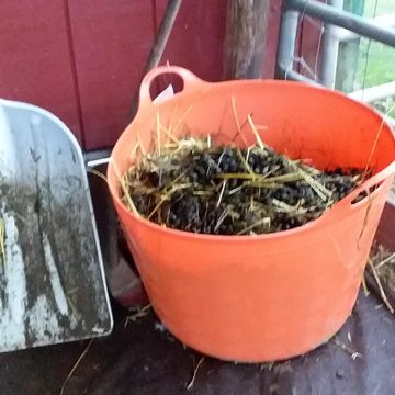 Also has straw, hay, pine needles, oak leaves, and the occasional rock in it